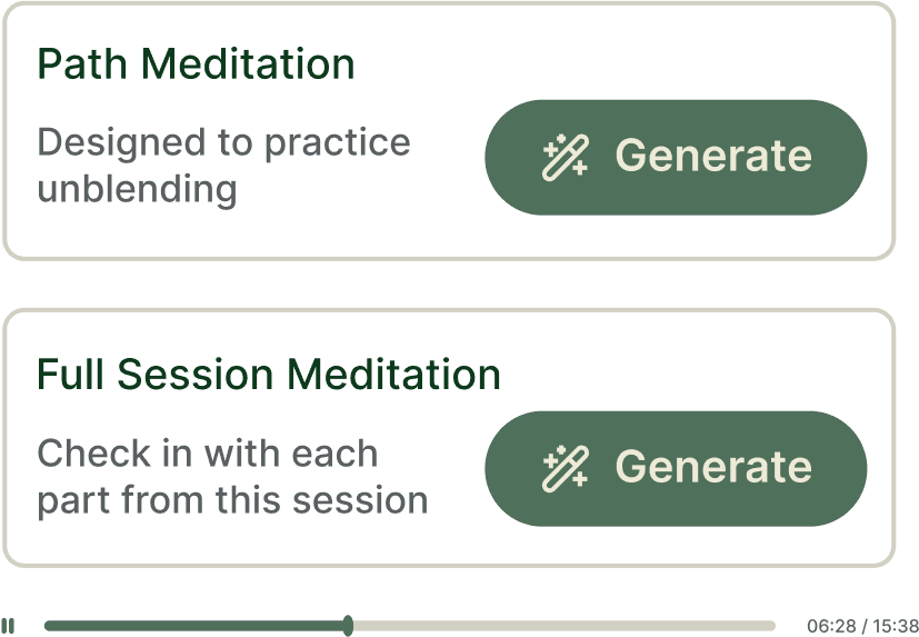 Finally, an easy way to check-in with your parts between sessions. Schedule reminders to reconnect with your parts and enjoy guided meditations personalized specifically to your parts and their needs.