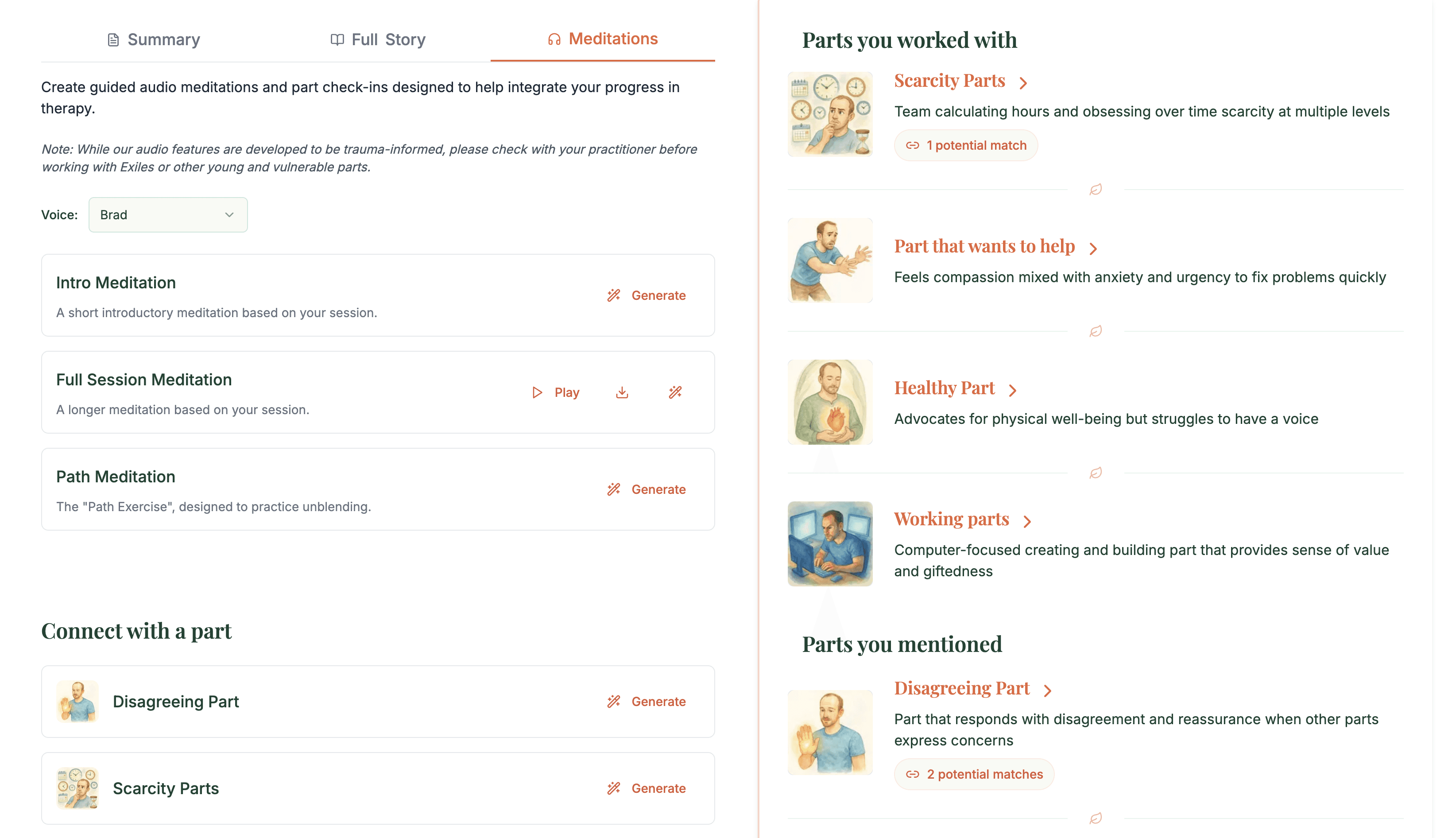 Unlike generic parts-work meditations, ours follow proper therapeutic